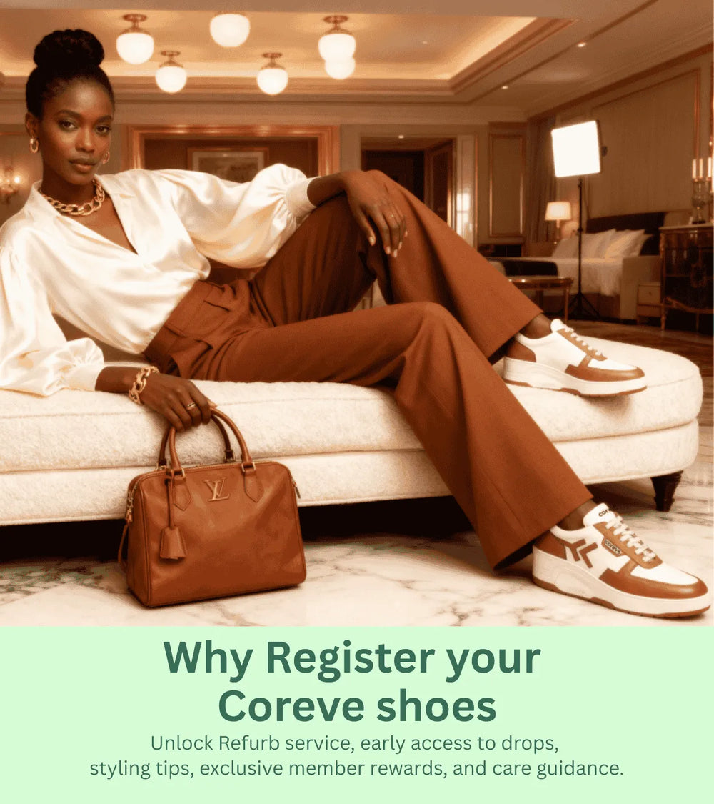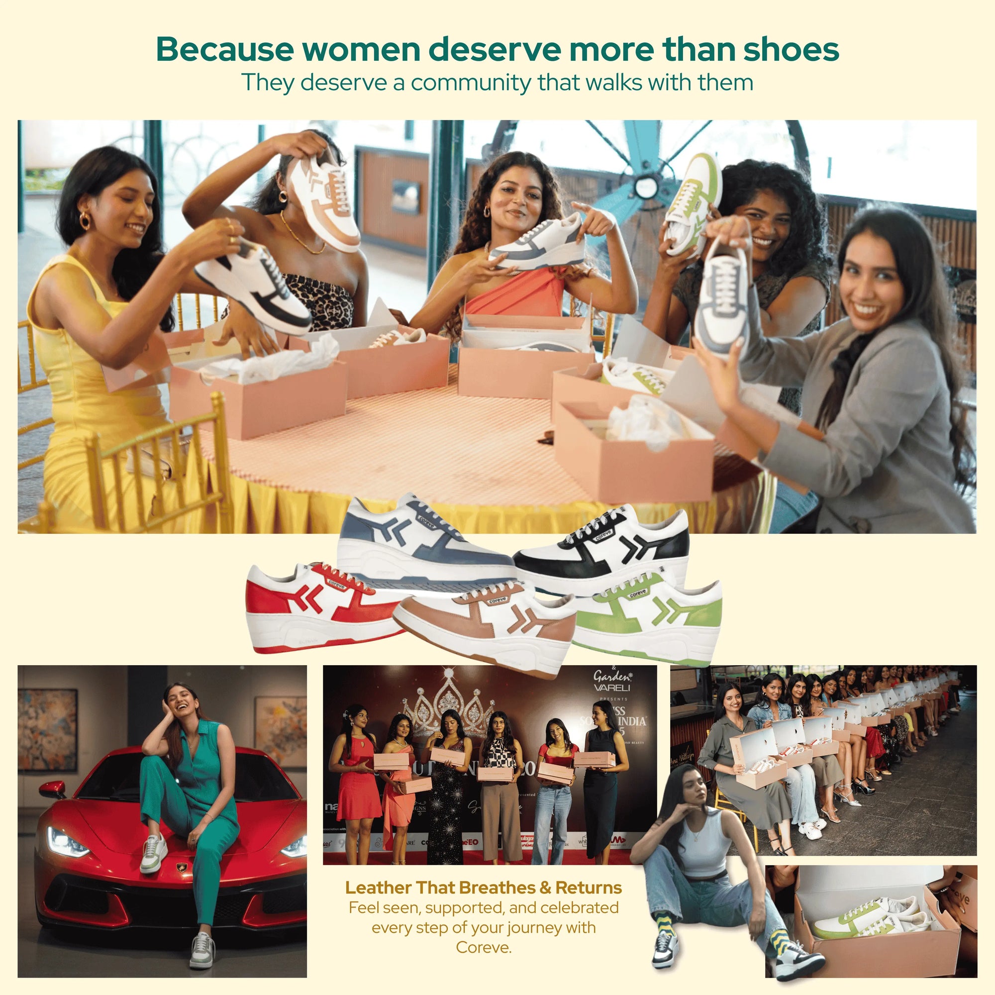 Queens Club ensures your Coreve sneakers stay beautiful for years — with Free refab care we ensure your Coreve experience stays as new as first timeMembers of our Queens club will also get exclusice access for early launches, rewards, cash-backs and access to community of women who move the world with you.Join to be part of something meaningful, lasting, and crafted with love.